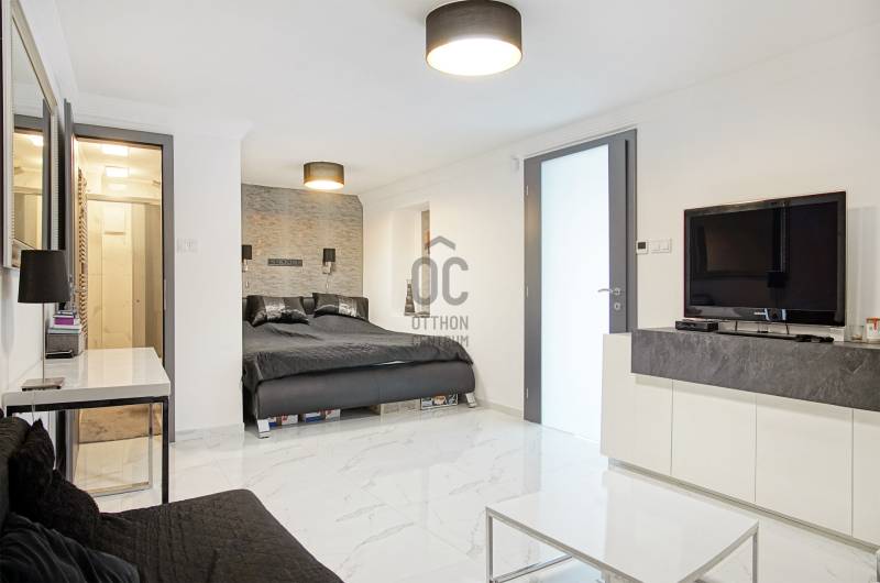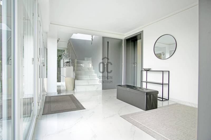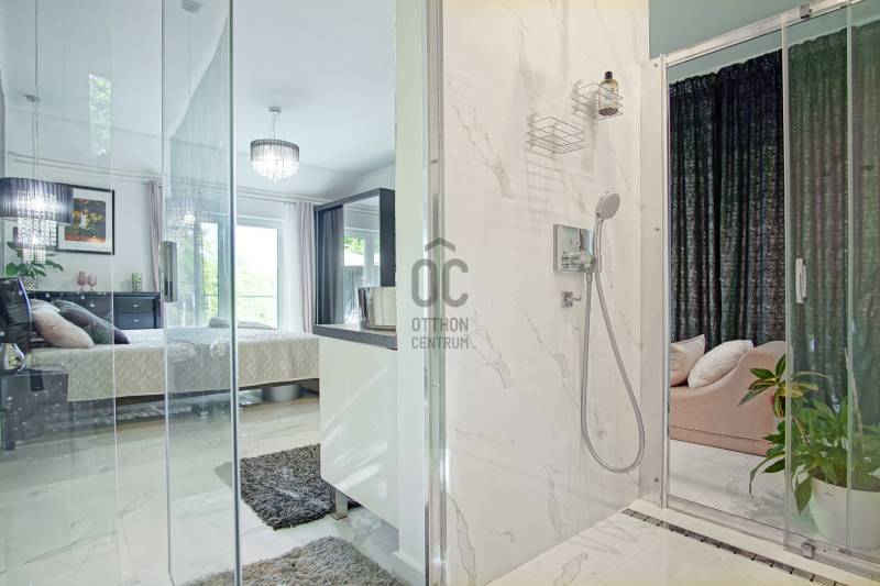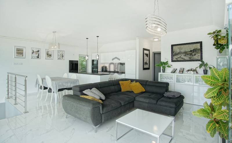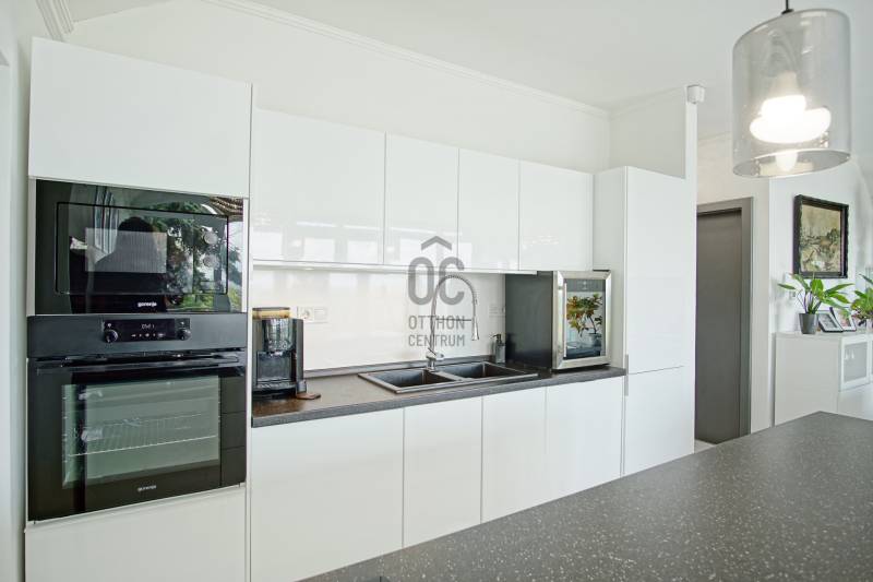 Örökpanoráma, modern otthon, kivételes lokáció – SzentendrénSzentendrén, a Pap-szigettel szemben, a hegyoldalban, páratlan dunai panorámával eladó egy 130 m²-es, kétszintes családi ház, amely ritka harmóniát kínál a természet közelsége és a korszerű otthon kényelme között.Néhány főbb paraméter a teljesség igénye nélkül:- Az emeleti nappaliból egészen Békásmegyertől Újpesten és Dunakeszin át Gödig ellátni – a látvány minden évszakban lenyűgöző, a reggeli kávé vagy az esti borozás itt igazi élmény.- Az ingatlan jelenlegi elrendezése: nappali + 2 szoba, de bontás nélkül is könnyedén 4 szobássá alakítható, így ideális választás lehet kisebb családnak, vagy akár otthoni irodát keresőknek is.- A ház 2023-ra teljeskörű felújításon esett át: megtörtént a villamos- és vízhálózat cseréje, az alapterület hivatalos bővítése, és kiépítésre került egy 7,8 kW-os napelemes rendszer is. Az ingatlan érvényes használatbavételi engedéllyel rendelkezik.- Az ingatlan fűtését korszerű, elektromos padlófűtés biztosítja ( helyiségenként külön termosztáttal szabályozható), amelyet a napelemes rendszer egészít ki – így a ház energiaellátása részben megújuló forrásból történik. A megfelelő szigetelésnek és az energiatakarékos megoldásoknak köszönhetően a rezsiköltség rendkívül alacsony, a fűtés pedig fenntarthatóvá válik, fosszilis energiaforrások használata nélkül.- A hűtésről modern, hűtő-fűtő klímaberendezés gondoskodik.- A ház szigetelése kiemelkedő: 15 cm grafitos külső szigetelés, 15 cm kőzetgyapotos tető- és födémszigetelés, háromrétegű hőszigetelt műanyag nyílászárók.- Energetikailag: A++- A melegvizet két Ariston okosbojler szolgáltatja, a rendszer a jövőben napkollektorral is bővíthető, az előkészítés megtörtént. Az emeleti WC-ben bidézuhany és piszoár is helyet kapott.- Az ingatlan riasztóval védett, távfelügyelethez csatlakoztatva. Korszerű szúnyoghálóval szerelt ablakok, optikai internet és 5G elérhetőség is rendelkezésre áll.- Az elektromos tolókapun keresztül az udvari beállóhoz jutunk, ahol 4-5 autó parkolása is kényelmesen megoldható. A házhoz egy száraz, körülbelül 20 m²-es pince és egy különálló szerszámtároló is tartozik.Az ingatlan ára: 157,9 millió forint, amely tartalmazza a beépített bútorokat és a teljes konyhai gépesítést.Ez az ingatlan kizárólag az Otthon Centrum egyedi konstrukciójú „Felező portfóliójában” található meg.Megtekintés kizárólag előzetes egyeztetéssel lehetséges. A panoráma és a miliő megéri a felvezető utat – de ezt személyesen fogja igazán érezni. Várom a hívását! Amennyiben nem tudom felvenni, visszahívom, amint lehetőségem adódik.Ez az ingatlan a \"Felező csomag\" megbízási portfólióhoz tartozik. Részletek az Otthon Centrum weboldalán.